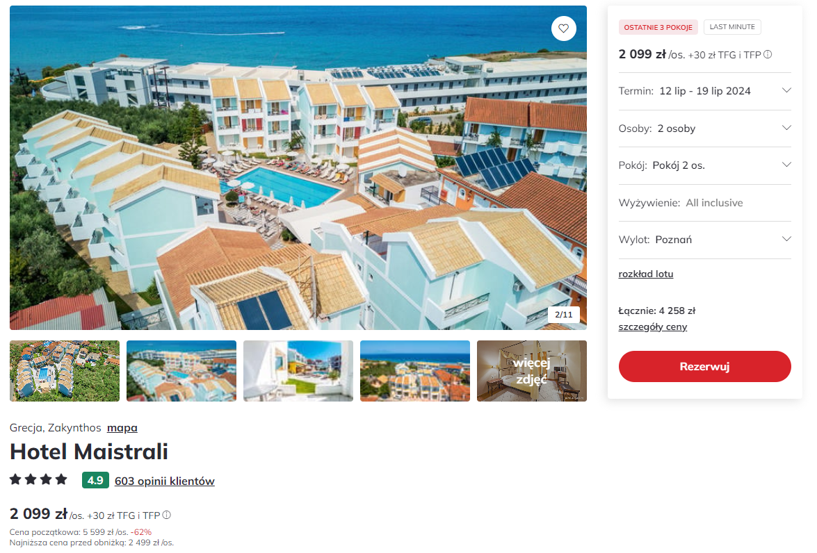 Wakacje na Zakintos: tydzień w 4* hotelu z all inclusive za 2099 PLN. Wylot z Poznania