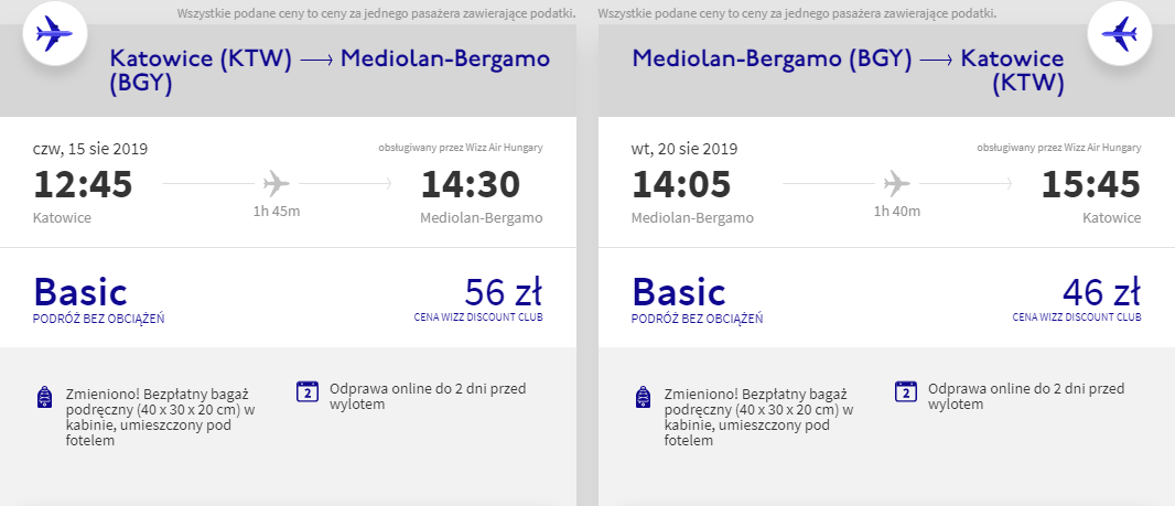 Przeloty realizowane są na pokładzie węgierskiej linii lotniczej Wizz Air. Aby uzyskać taką cenę, musisz być członkiem Wizz Discount Club.