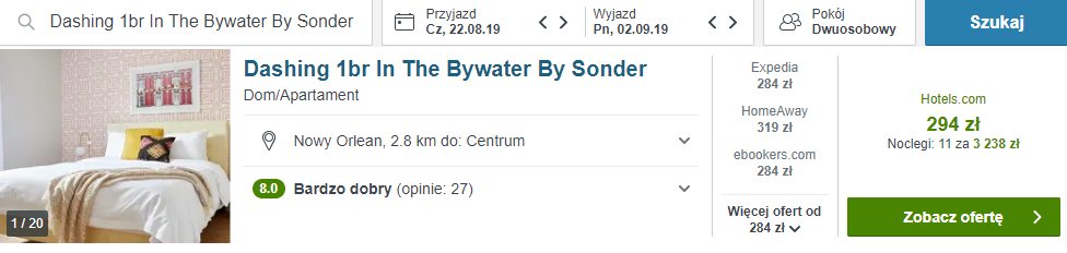 W proponowanym przeze mnie apartamencie znajdziecie wszystko co potrzebne do komfortowego pobytu. Salon, łazienkę oraz kuchnię z lodówką, piekarnikiem, płytą kuchenną i kuchenką mikrofalową. Ponad to dostępny jest również bezprzewodowy internet a przed domem parking. Obiekt leży w bliskim sąsiedztwie z centrum Nowego Orleanu.
