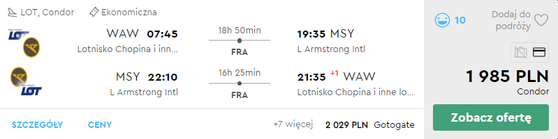 Wakacyjne loty do Nowego Orleanu z Warszawy za 1985 PLN