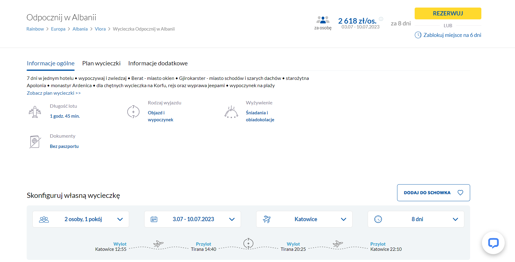 Do Albanii udasz się na w terminie 3-10 lipca. Czeka cię bezpośredni lot z 5 wybranych miast do Tirany.