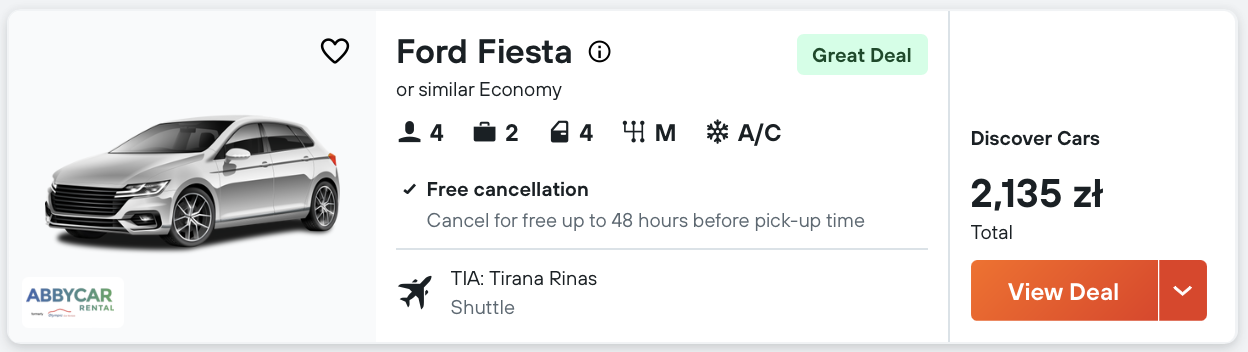 Aby wygodnie dojechać do Durres i zobaczyć wszystkie okoliczne atrakcje, wypożyczcie samochód już na lotnisku w Tiranie.