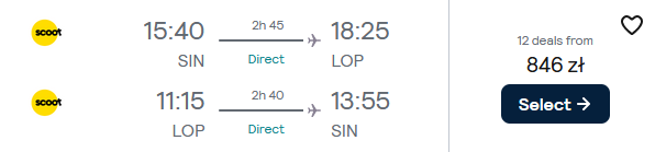 W podróż udasz się w terminie 20 czerwca – 3 lipca. Czekają cię loty z Warszawy do Singapuru, realizowane linią Finnair. Po drodze przesiądziesz się w Helsinkach. W terminie 24 czerwca – 3 lipca bezpośrednim połączeniem wybierzesz się na Lombok. Na wyspy Gili popłyniesz promem z miejscowości Bangsal. Bilety w jedną stronę zaczynają się od 3 PLN/osoba.