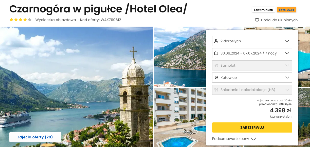Wakacje w Czarnogórze: tydzień w hotelu z wyżywieniem (+ wycieczki) za 2199 PLN. Wylot z Katowic