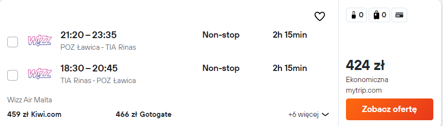 Poniżej znajdziesz przygotowany przeze mnie zbiór propozycji europejskich lotów w terminie obejmującym wakacje. Pamiętaj, że bez dodatkowych opłat podróżować będziesz z samym bagażem podręcznym. Najtańsze bilety możesz zarezerwować już za 191 PLN.