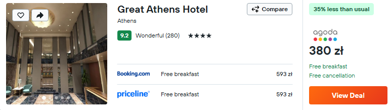W greckiej stolicy wybierz elegancki 4* Great Athens Hotel. W cenę pobytu wliczono tam codzienne śniadania.