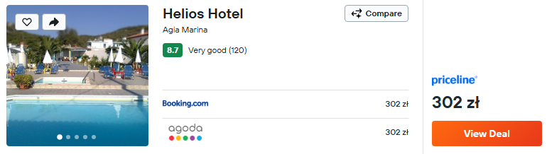 Na wyspie rozważ kameralny hotel Helios. Obiekt oferuje m.in. ogólnodostępny odkryty basen.