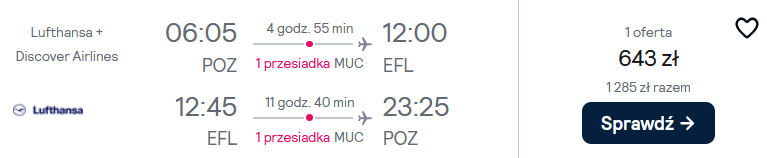 Do Grecji udasz się w terminie 27 czerwca-4 lipca 2025 r. z lotniska w Poznaniu. Na Kefalinię polecisz linią Lufthansa z przesiadką w Monachium. W cenę biletu wliczony został bagaż podręczny oraz przedmiot osobisty.