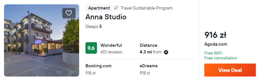 W Heraklionie proponuję ci noclegi w kompleksie apartamentów Anna Studio. Każde studio składa się z aneksu kuchennego, miejsca do relaksu i spania, balkonu oraz łazienki. Na miejscu zapewniony będziesz mieć dostęp do bezpłatnego parkingu oraz sieci WiFi.