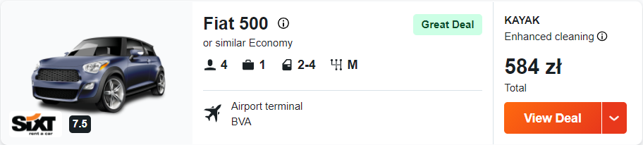 Za loty w dwie strony oraz auto zapłacicie tylko 454 PLN za osobę, przy 2 podróżnych.