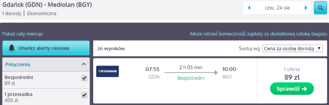 Zarezerwuj przelot z Gdańska do Bergamo (Ryanair):