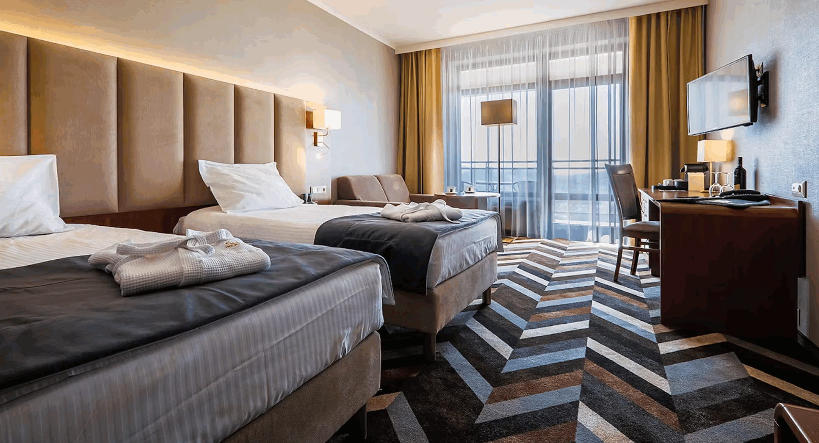 Na miejscu zatrzymasz się w komfortowo urządzonym pokoju wyposażonym w klimatyzację, telewizor LCD oraz czajnik elektryczny. W łazience jest wanna, suszarka do włosów oraz podstawowe przybory toaletowe. W pakiecie Travelist.pl zapewniony będziesz miał codzienne śniadania i obiadokolacje oraz dostęp do strefy wellness (27-metrowy przeszklony basen, brodzik, sauna sucha, łaźnia parowa, jacuzzi i bicze wodne)