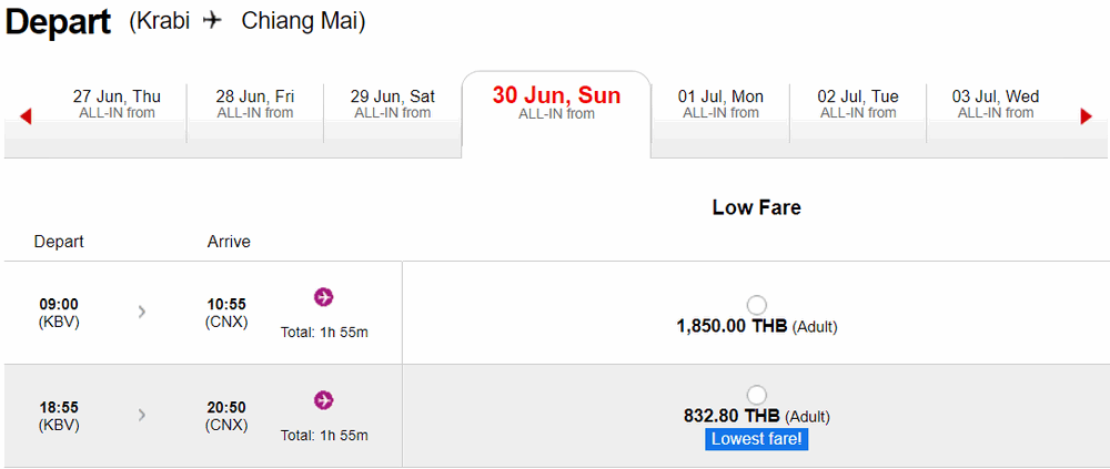 Air Asia | Krabi – Chiang Mai | 832 THB ok. 96 PLN | 26, 27, 28, 29, 30 czerwca