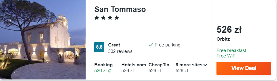 Nad włoskim wybrzeżem Morza Adriatyckiego rekomenduję wam pobyt ze śniadaniami w 4* hotelu San Tommaso, który mieści się w zabytkowym budynku, w spokojnej i cichej okolicy miasta Polignano a Mare.