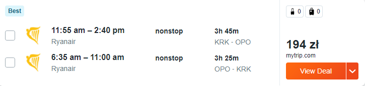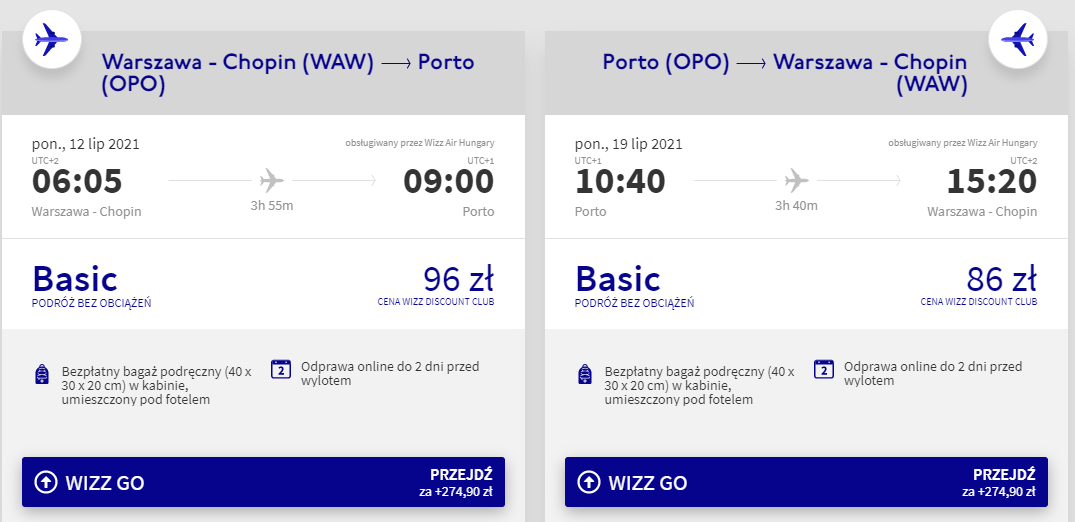 W przygotowanym przeze mnie zestawieniu znajdziecie przeloty w lipcu do Porto, Faro i Lizbony. Macie do wyboru krótsze, jak i nieco dłuższe wycieczki – na pewno znajdziecie coś dla siebie. Do Portugalii podróżować będziecie z Warszawy lub Krakowa. Bezpośrednie loty w każdą ze stron odbędziecie na pokładzie samolotu linii lotniczej Ryanair lub Wizz Air, z wliczonym małym bagażem podręcznym.