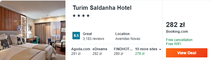 W Lizbonie rozważcie ofertę pobytu w 4* hotelu Turim Saldanha, który znajduje się w sąsiedztwie parku Edwarda VII. Wszystkie pokoje zostały wyposażone m.in. w klimatyzację oraz telewizor LCD.