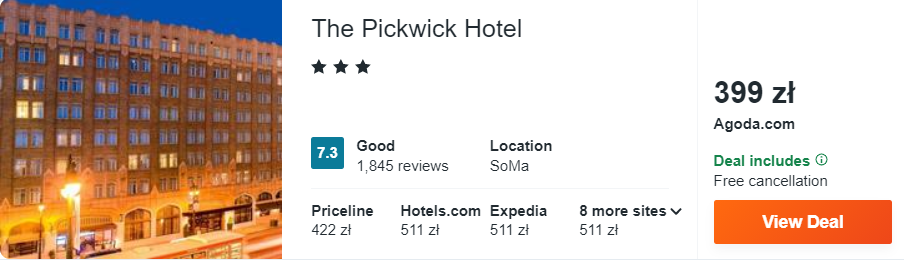 Kilka dni w San Francisco wystarczy, aby zobaczyć główne atrakcje miasta (most Golden Gate, Pier 39, Lombard Street czy słynne Alcatraz) oraz przejechać się tramwajem linowym. Tych parę dni proponuję wam spędzić w 3* The Pickwick Hotel, który znajduje się w odległości 700 metrów od Union Square.
