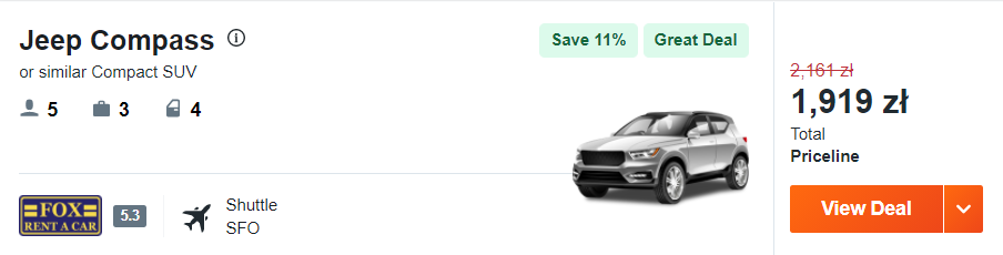 Po przylocie do San Francisco rekomenduję wam wypożyczyć samochód, dzięki temu łatwo i wygodnie dojedziecie do pobliskich parków narodowych (Yosemite, Sekwoi), nad jezioro Tahoe, do Los Angeles czy nawet do Doliny Śmierci. Wakacyjne ceny wynajmu auta z segmentu SUV zaczynają się od 128 PLN/doba.