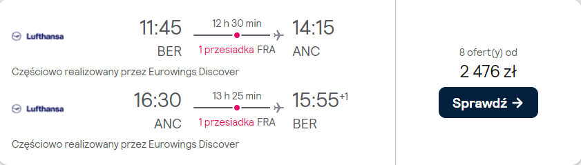 Do Anchorage podróżować będziesz z portu lotniczego Berlin-Brandenburg w okresie pomiędzy czerwcem a lipcem. Część z dostępnych terminów znajdziesz wypisanych poniżej w tekście.