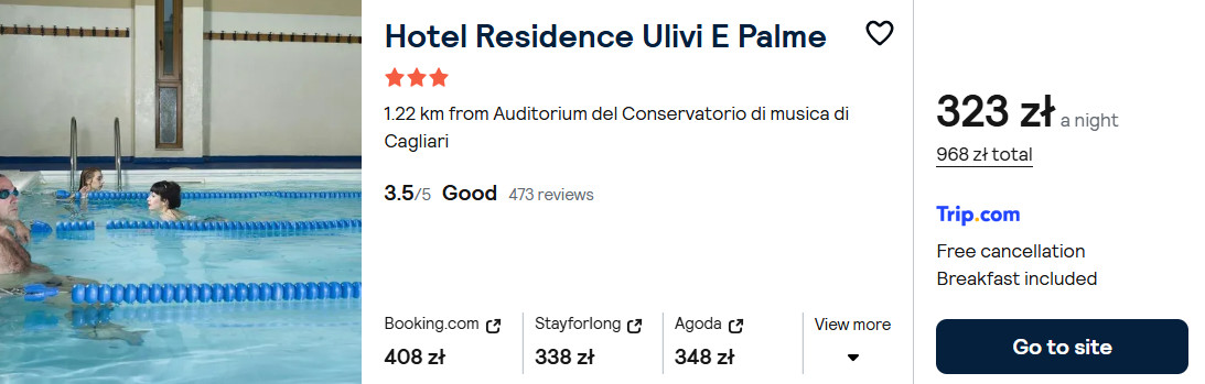 Zarezerwuj pobyt w 3* hotelu Ulivi e Palme3! Czeka na ciebie kryty basen, siłownia i korty tenisowe. Rano pyszne śniadanie w formie bufetu z włoską kawą i widokiem. Idealne miejsce na relaks i aktywny wypoczynek w Cagliari!