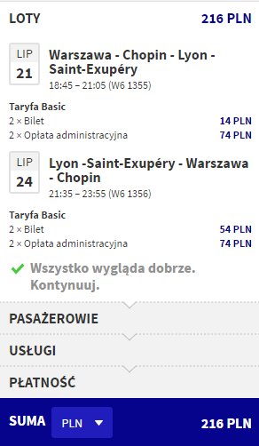 - Przeloty na trasie Warszawa – Lyon – Warszawa za 216 PLN/2 osoby (108 PLN/osoba)
