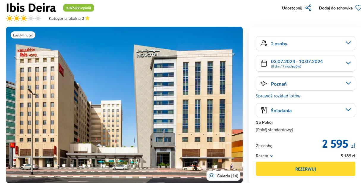 Spędzisz tydzień w 3* hotelu znanej sieci Ibis Deira. Obiekt oferuje nowoczesne wnętrza, przestronne, klimatyzowane pokoje oraz dogodną lokalizację.