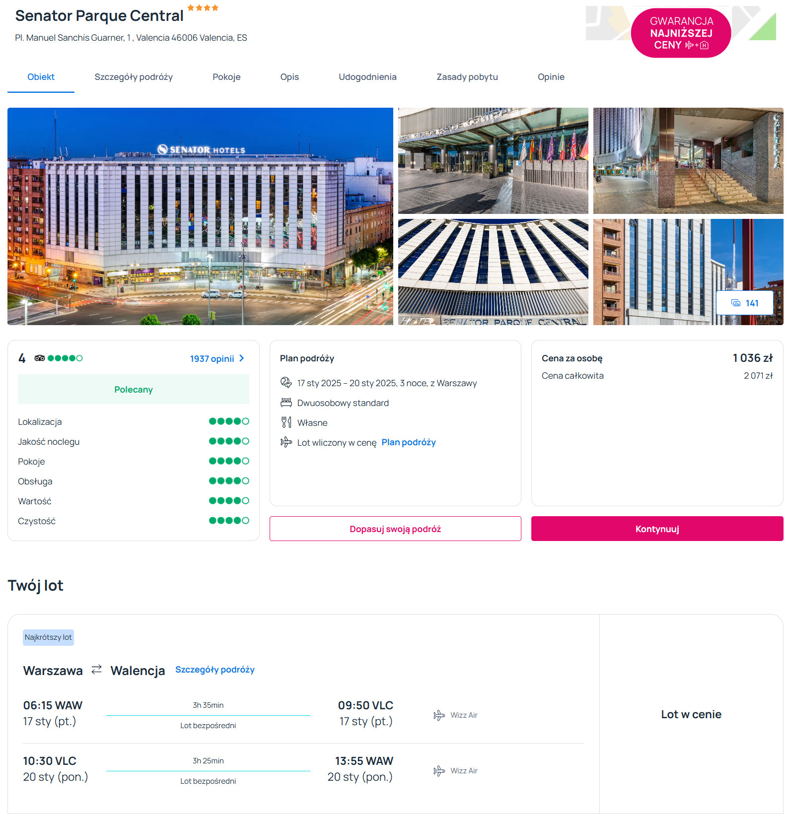 Na miejscu zatrzymasz się w 4* hotelu Senator Parque Central, który od starego miasta oddalony jest o 10 minut spokojnego spaceru. Każdy pokój został wyposażony w klimatyzację z funkcją ogrzewania, telewizor LCD, minibar oraz czajnik elektryczny. W łazience jest prysznic, suszarka do włosów oraz podstawowe przybory toaletowe. Na terenie całego obiektu będziesz miał zapewniony dostęp do siei WiFi.