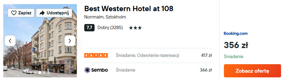 🛌 Noc w hotelu Best Western: 356 PLN