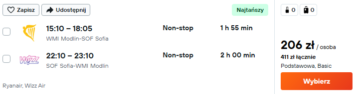 ✈️ Loty z Warszawy (Modlin) do Sofii: 411 PLN