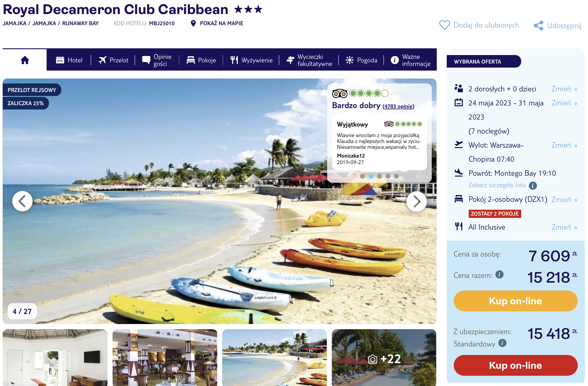 Do Montego Bay udasz się w terminie 24-31 maja z Warszawy lub Gdańska. Na Karaiby polecisz z bagażem rejestrowanym na pokładzie samolotów linii lotniczych PLL LOT i Condor. Po drodze czekają cię przesiadki we Frankfurcie.