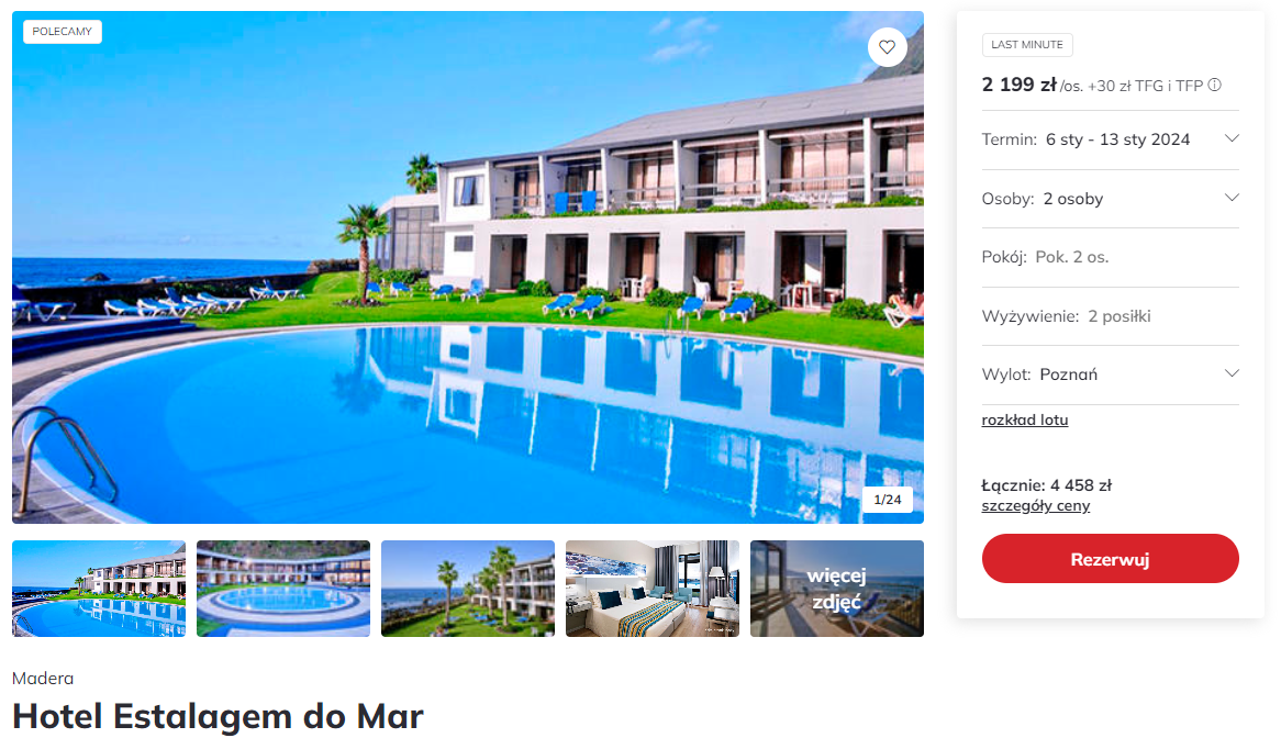 Podróż do Portugalii zaplanowana została w terminie 6 – 13 stycznia. Czeka cię bezpośredni lot z Katowic, Poznania lub Warszawy do Funchal, realizowany na pokładzie samolotu linii lotniczej Smartwings. Możesz zabrać ze sobą bagaż podręczny oraz rejestrowany (nadawany do luku).