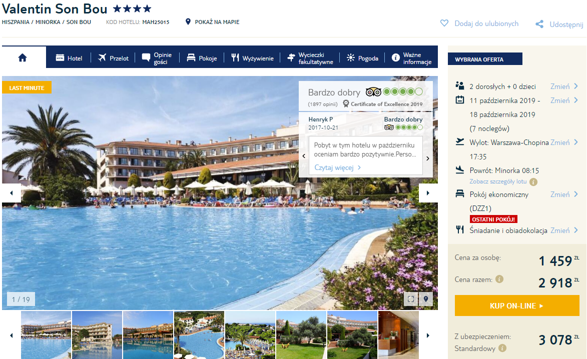 Valentin Son Bou to komfortowy hotel, który zlokalizowany jest w spokojnej okolicy, około 1,5 km od plaży, do której dowiezie was hotelowy bus, jeżeli nie będziecie mieli ochoty na 20 minutowy spacer. W hotelowej restauracji serwują urozmaicone dania, które przypadną do gustu każdemu. Na miejscu działa również małe centrum wellness. Dla najmłodszych przygotowano oddzielny basen, plac zabaw i miniklub. Obiekt został wyróżniony certyfikatem jakości w portalu TripAdvisor. Temperatury w trakcie pobytu nie spadną poniżej 20 stopni Celsjusza, a opady praktycznie nie są spotykane.