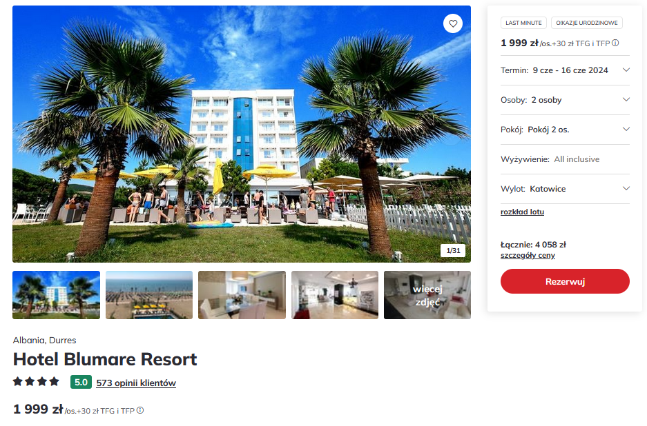 Wczasy w Albanii: 4* hotel z all inclusive za 1999 PLN. Wyloty z 2 miast