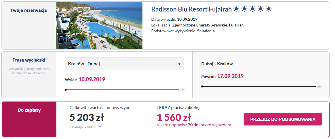 Wczasy w Emiratach: 5* Radisson Blu Resort z BB za 2602 PLN. Wylot z Krakowa