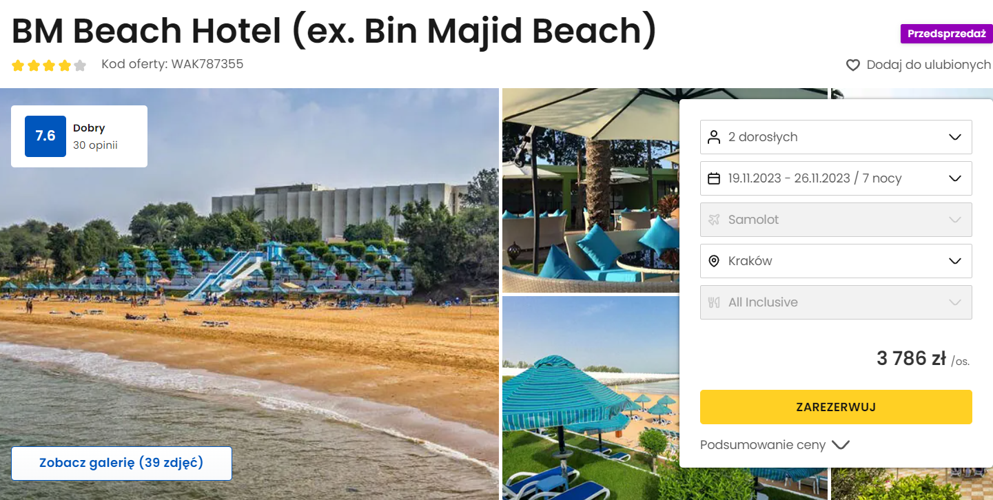 Wczasy w Zjednoczonych Emiratach Arabskich: 7 dni w 4* hotelu z all inclusive od 3786 PLN. Wyloty z 4 miast
