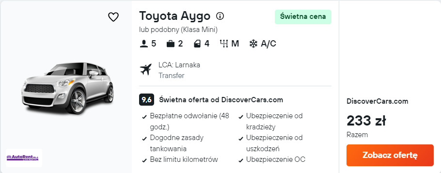 W trakcie pobytu masz zamiar wybrać się w inne rejony Cypru? W takim razie wypożycz samochód zaraz po przylocie, ponieważ mając do swojej dyspozycji auto, łatwo i wygodnie dojedziesz m.in. do Nikozji lub Limassol.