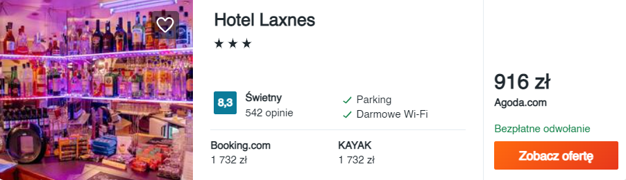 Na Islandii zatrzymajcie się w 3* hotelu Laxnes, położonym w okolicy stolicy kraju. Obiekt oferuje m.in. komfortowe pokoje, bezpłatny parking i Wi-Fi. Co więcej, to miejsce cieszy się doskonałymi opiniami wśród dotychczasowych gości.