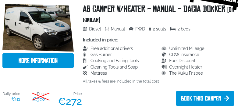 Po wylądowaniu na wyspie, wypożycz kamper. Wyposażony jest on w kuchenkę gazową, ogrzewanie i dwa łóżka. Zapewni Ci on komfortowe zwiedzanie wyspy.