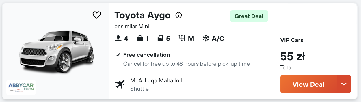 Za loty w dwie strony, zakwaterowanie i auto zapłacicie tylko 459 PLN za osobę, przy 2 podróżnych śpiących w jednym pokoju.