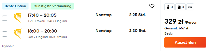 Do Italii udasz się w weekendowym terminie (piątek po południu – niedziela wieczorem) 10 – 12 stycznia. Do Cagliari polecisz bezpośrednio z Krakowa linią Ryanair. Bez dodatkowych opłat możesz zabrać bagaż podręczny.