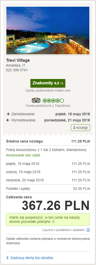 - Noclegi w hotelu 4* Trevi Village za 367 PLN/2 osoby/3 noce (183,5 PLN/osoba)