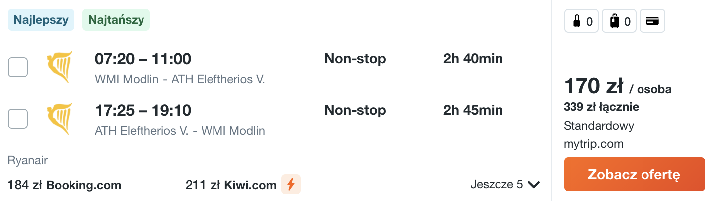 Na wycieczkę udacie na pokładzie samolotu linii lotniczej Ryanair z warszawskiego lotniska w Modlinie. Do Grecji polecicie w dniach 4-6 marca (piątek – niedziela). Pamiętajcie, że w cenę biletów wliczony jest wyłącznie mały bagaż podręczny. Przed wyjazdem koniecznie przeczytajcie nasze wskazówki, jak się spakować.