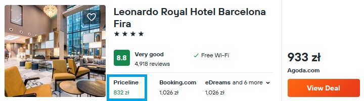 Wybierz pośrednika Priceline, aby uzyskać najniższą cenę.