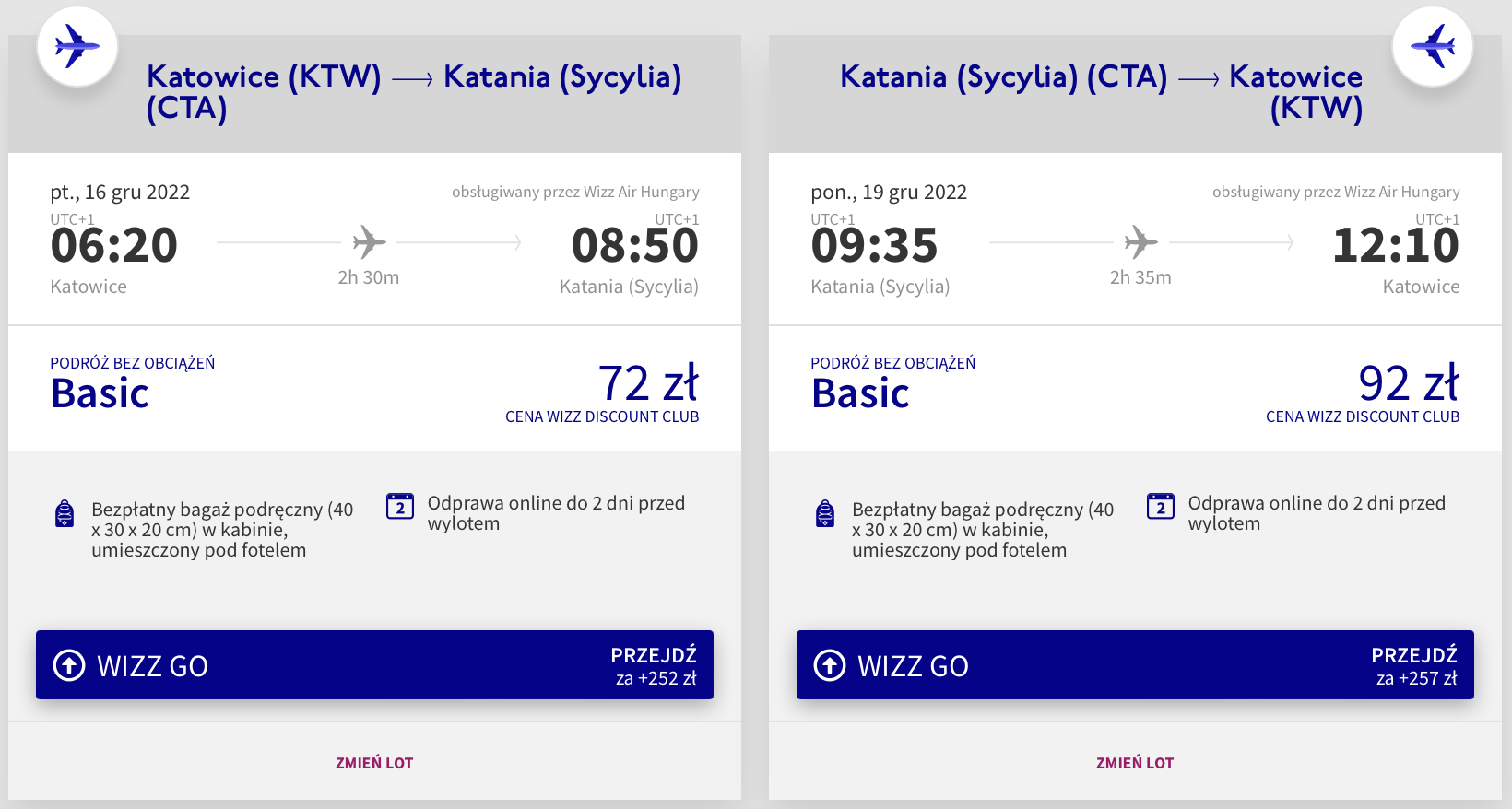 Do Włoch udacie się w terminie 16-19 grudnia (piątek-poniedziałek) z lotniska w Pyrzowicach. W obie strony polecicie bezpośrednio na pokładach samolotów linii Wizz Air. Bilety w najniższej cenie dostępne są dla osób z Wizz Discount Club. Chętni na loty bez WDC zapłacą więcej.