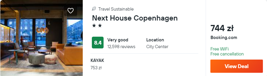W Kopenhadze rekomenduję zakwaterowanie w hotelu Next House Copenhagen, który znajduje się w sercu miasta. Kompleks został nowocześnie urządzony i posiada komfortowe pokoje z prywatnymi łazienkami i WiFi. Goście mogą również skorzystać z siłowni.