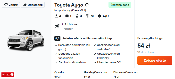 Samochód od 54 PLN/pobyt