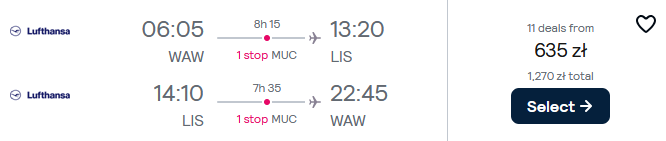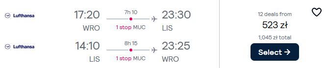 Na Półwysep Iberyjski wybierzesz się w terminie 22-25 listopada (piątek-poniedziałek) z lotnisk w Rzeszowie, Wrocławiu lub Warszawie. Na wycieczkę polecisz linią Lufthansa z przesiadką w Monachium. W cenę biletu wliczony jest bagaż podręczny i przedmiot osobisty.