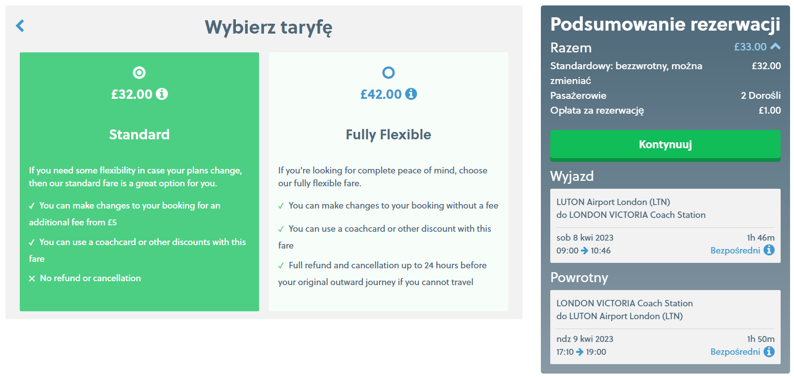 Jedną z najszybszych opcji dojazdu z lotniska Luton do centrum Londynu (dworzec Victoria), jest przejazd autokarem firmy National Express Coaches. Za kurs w dwie strony zapłacisz 33 GBP/2 osoby (ok. 177 PLN). Bilety zarezerwujesz za pośrednictwem strony internetowej przewoźnika.
