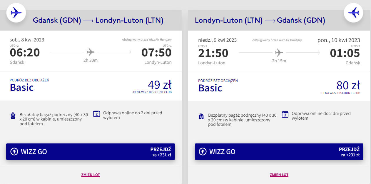 Gdańsk – Londyn Luton – Gdańsk »