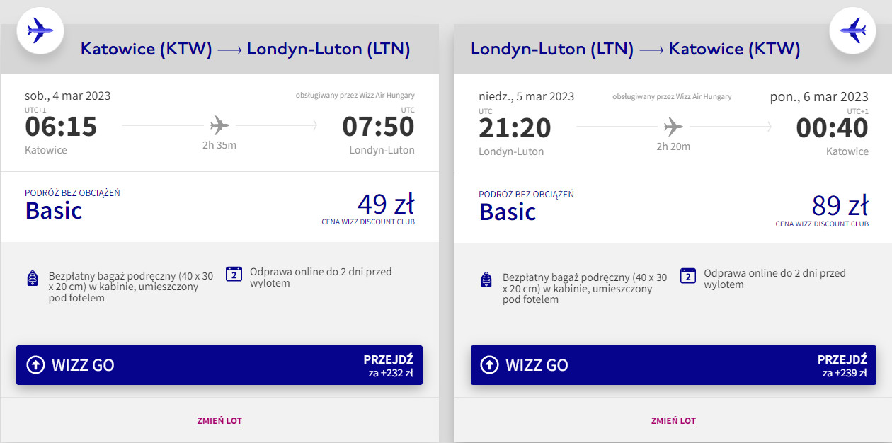 Katowice – Londyn Luton – Katowice »